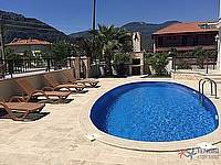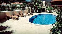 A large awning over the furnished dining terrace makes this a perfect spot for meals outside and early evening drinks, with table and chairs for 4 people. There are 2 sun beds and an umbrella.