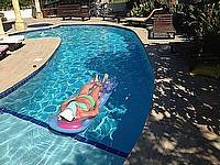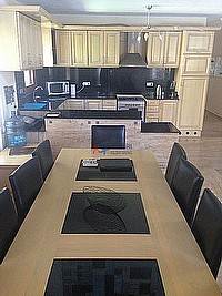 The is a covered outside bar with seating for 12 on teak seats around a teak dining table. Inside is an indoor granite and wood dining table seats 10 leather settees in the upstairs lounge which is open plan and great for entertaining. Downstairs is a second huge lounge with flat screen TV room so adults and children can have their own space.