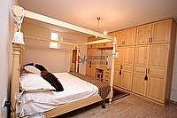 All bedrooms have 3 or 4 wardrobes, bedside drawers and dressing tables. Basement bedroom 1(master suite)has an extra king size 4 poster bed, handmade Turkish carpets with en suite Jacuzzi bath and over bath shower. Ground floor bedroom 2 is a twin with disabled friendly amenities in the en suite wet room. Bedroom 3 is a king size half poster bed with hand woven Turkish carpet and en suite wet room. Set floor, bedroom 4 is in the eaves. It has a double bed and a large en suite wet room. Bedroom 5 has the most beautiful views of the mountain through the window from the elegant king size bed. It is a joy to watch the dawn break. There is a large en suite wet room.