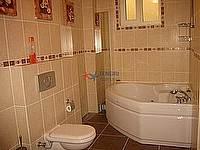 The ground floor living room is open plan with 3 black quality leather settees looking out onto the dining table which is the same cream finish as the kitchen with granite inserts complimenting the kitchen decor. The huge basement has a remote electric fire (not needed in summer but very cosy in winter!) with a 50″ satellite TV and 3 large settees, one of which is a bed settee.