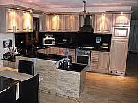 The solid wood hand crafted kitchen is finished in a cream wood stain and a black granite work surface. It is fully fitted with an integral fridge, a further smaller under work top fridge and is very well equipped with cooking gadgets (slow cooker, fat free grill, coffee maker, whole fruit juicer) as well as a dishwasher, microwave, toaster, kettle etc. It is open plan and integrates seamlessly with the decor of the dining area and living space.