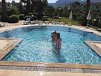 The kitchen is fully fitted and equipped with all mod cons. The seating in the comfortable lounge area (seats 12) surrounds a stunning hand woven Turkish carpet. The dining area has glass and wrought iron dining tables and wrought iron chairs. Private bar with seating for 16 around a huge marble table The villa sleeps 12 privately in 6 ensuites bedrooms for additional people a 50 pound a week charge is made this does not apply to children below 8 years of age.